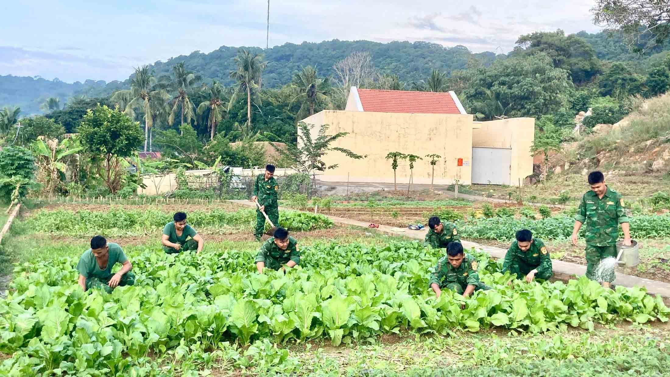Ở cách đất liền hơn 200 km, đặc khu Thổ Châu (An Giang) là “vọng gác” tiền tiêu phía Tây Nam của Tổ quốc. Giữa trùng khơi sóng gió, cùng với các đơn vị vũ trang, bên cạnh nhiệm vụ thiêng liêng bảo vệ chủ quyền biên giới biển đảo, những người lính Đồn Biên phòng Thổ Châu còn miệt mài với công tác tăng gia sản xuất. Những vườn rau xanh mướt không chỉ giúp cải thiện bữa ăn, nâng cao sức khỏe bộ đội mà còn là biểu tượng cho sức sống mãnh liệt và ý chí vượt khó của người chiến sĩ mang quân hàm xanh.