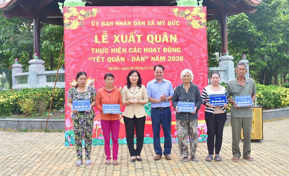 Theo đó, Tết Quân – Dân năm 2026 tại xã Mỹ Đức với chủ đề “Xuân nghĩa tình ấm áp đến mọi nhà” diễn ra từ tháng 12/2025 đến hết tháng 01/2026, gồm các hoạt động: Tuyên truyền chủ trương của Đảng, chính sách, pháp luật Nhà nước về nhiệm vụ quốc phòng; thực hiện chính sách an sinh xã hội, hậu phương quân đội, chăm lo nhà ở, tặng quà cho gia đình chính sách, hộ nghèo địa phương.