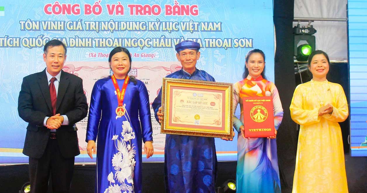 Một trong những điểm nhấn quan trọng của buổi lễ là nghi thức đón nhận bằng tôn vinh giá trị nội dung kỷ lục Việt Nam dành cho di tích quốc gia đình Thoại Ngọc Hầu và bia Thoại Sơn gắn với lịch sử dòng kênh Thoại Hà. Đây là sự ghi nhận xứng đáng cho những giá trị văn hóa - lịch sử vô giá mà tiền nhân đã để lại, đồng thời khẳng định nỗ lực bảo tồn của địa phương.